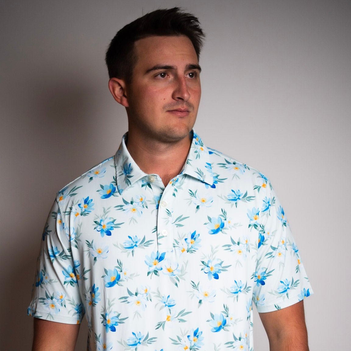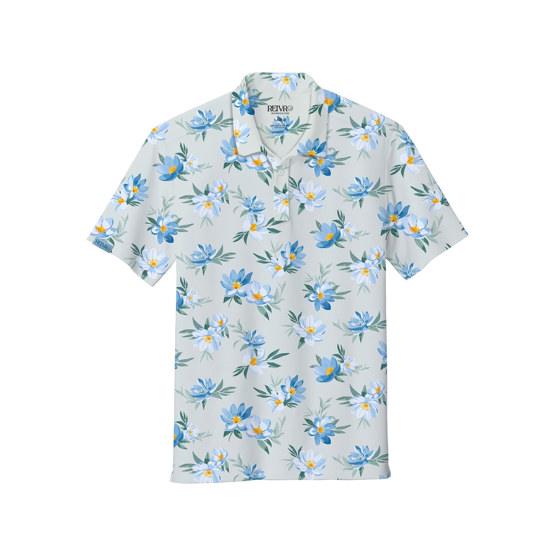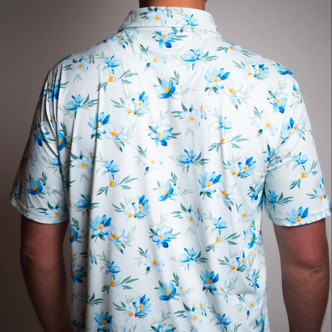 The Blue Poppy Golf Polo features a soft light-blue base decorated with vibrant poppy florals for a fresh, standout look on the course. Made with breathable, performance stretch fabric, this polo delivers all-day comfort and lightweight mobility. Perfect for golfers who want a bold yet refined floral design that pops in any season.